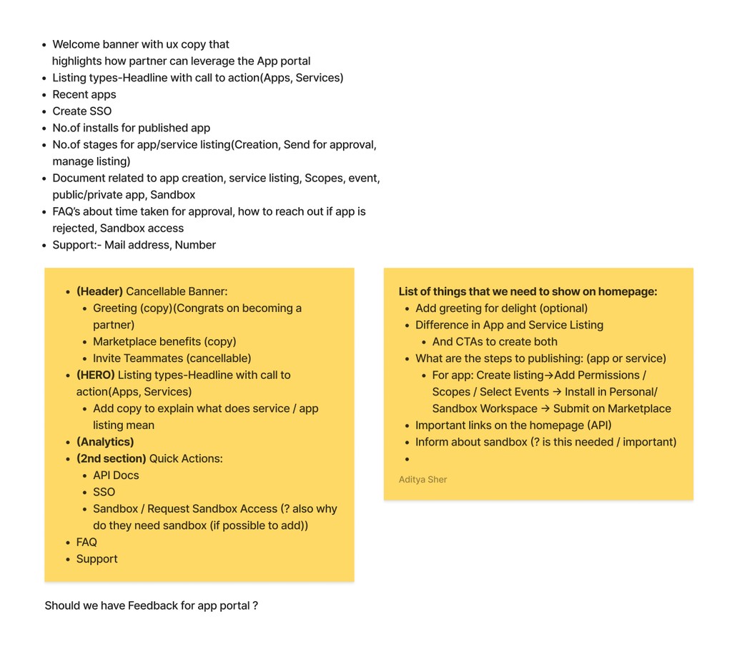 To begin, I had an in-depth discussion with the Product team about the need for a homepage and its benefits. We also talked about the different personas who would be using this product. Our main personas are admins, developers, and marketers from the integration partner group.