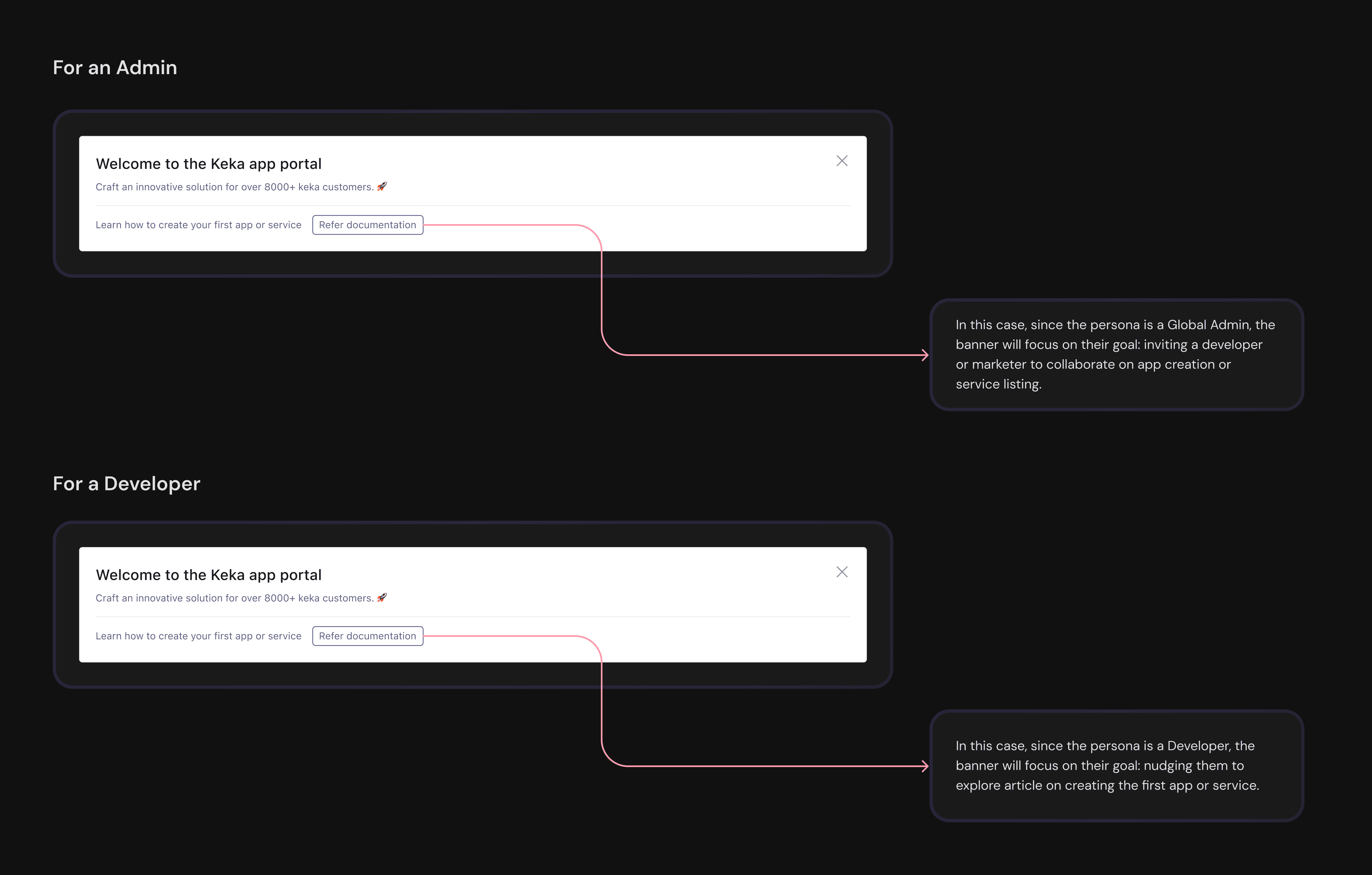 Personalised Banner for an Admin and a developer